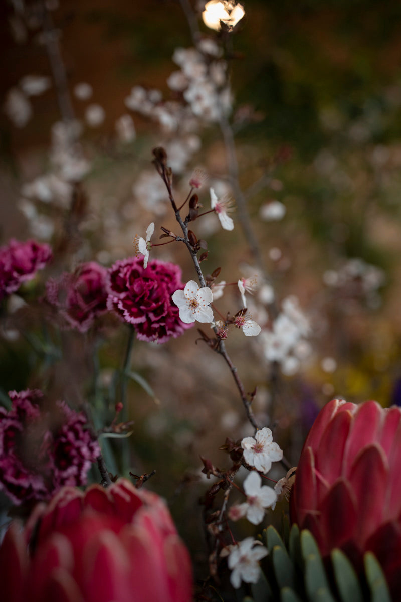 Representing the last of our coldest days and the gradual shift towards Spring, the flowers of August celebrate the best of winter while also showing us small hints of Spring, with longer days imminent, and brighter colours emerging in unexpected places. The flowers and foliages you’re likely to see in our bouquets at this time of year are acacia wattle, banksias, proteas, eucalyptus, wax flower, blossom, tulips, japonica, golden wattle, magnolia and local cymbidium orchids.